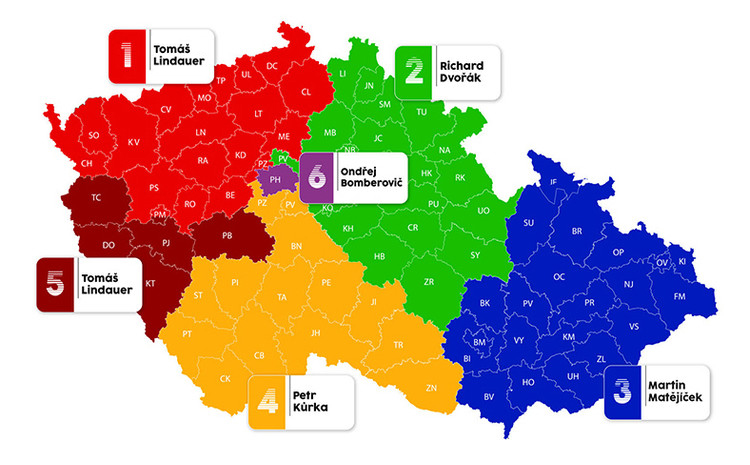 S dotazy a žádostmi o technickou pomoc se, prosím, obracejte na naše technické poradce projektového týmu podle sídla firmy nebo projektu: