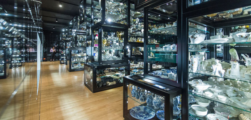 Expozicí Black & Light Depo přichází galerie s originálním formátem otevřeného depozitáře, které návštěvníkům zprostředkují komplexní pohled na sbírky skla, porcelánu a keramiky. Působivé prostorové interpretace sbírek se ujal Maxim Velčovský spolu s kurátorem Radkem Wohlmuthem a studiem Edit! Prostředí této expozice doplňují stěny z RAKO černých obkládaček Color One 15 x 15 cm, ve kterých se sbírky doslova „zrcadlí“.
