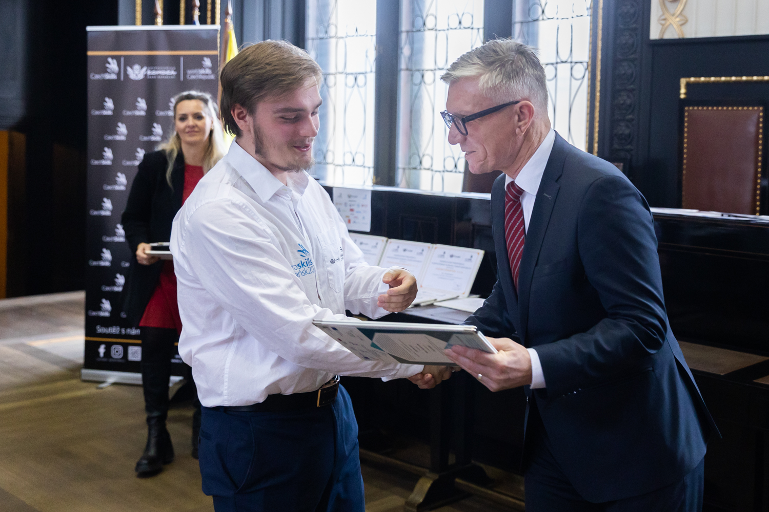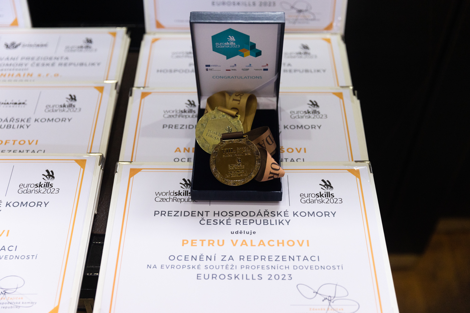 V reprezentativních prostorách Brožíkova sálu Staroměstské radnice v Praze ocenil prezident HK ČR členy a partnery národního týmu, kteří reprezentovali Českou republiku od 5.– 9. září 2023 v polském Gdaňku na 8. evropském šampionátu odborných profesních dovedností EuroSkills 2023.