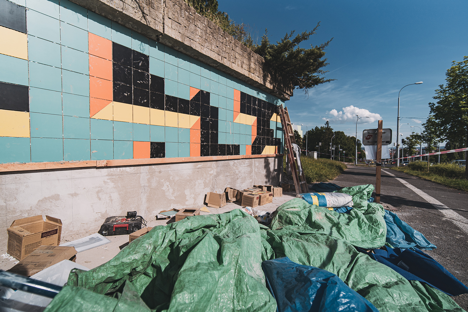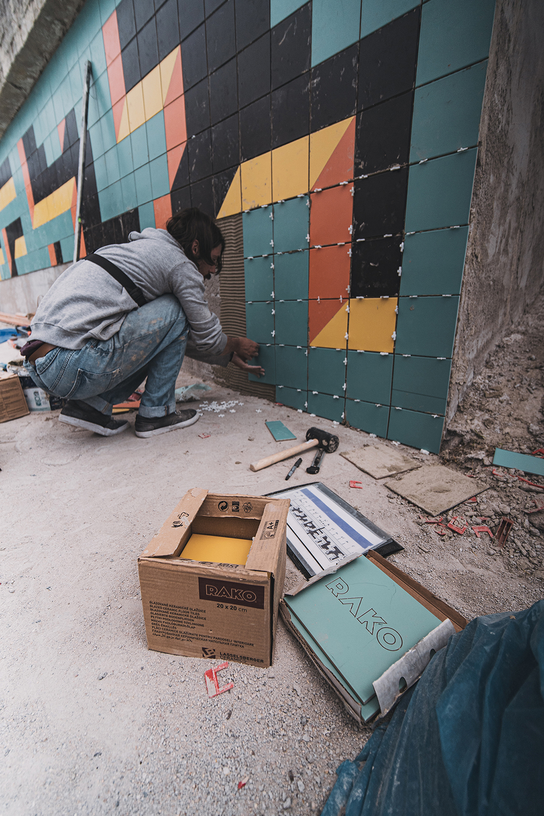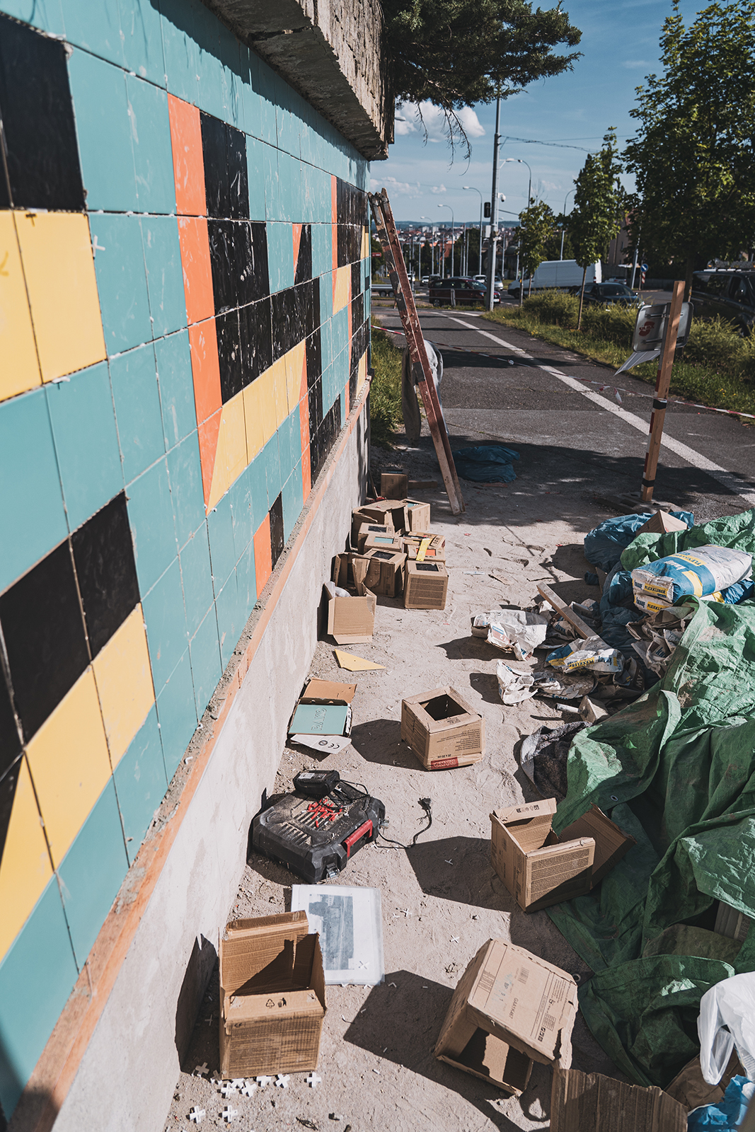 Umělecká realizace je tvořena na velmi viditelném místě na Karlovarské třídě a jejím autorem je francouzský umělec s pseudonymem Blackdoors https://www.instagram.com/_blackdoors_/, který pracuje zejména s dlažbou a vytváří velmi zajímavá a neotřelá street artová díla, v Plzni s RAKO obklady.