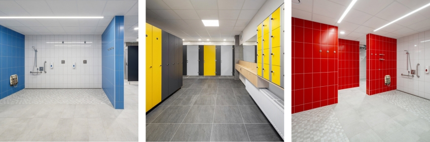 „Při výběru materiálů pro bazény je kladený důraz na kvalitu, dlouhou životnost a snadnou údržbu,“ konstatuje Richard Dvořák z projektového týmu LASSELSBERGER. „Zároveň je nutné hledat řešení – materiály, které splňují přísné normy, vyhlášky na protiskluzné povrchy jak v bazénu, tak ve sprchách nebo v šatnách. Výrobky RAKO jsou v souladu s novými požadavky Vyhlášky 146/2024 pro hygienické prostory, konkrétně na protiskluznost R10 pro WC a sprchy. Keramické obklady RAKO nabízí pro bazény širokou škálu protiskluzných povrchů – pro chůzi v obuvi v rozsahu R9–R12 a pro chůzi bosou nohou v rozpětí A/B/C. Součástí dodávky obkladů pro svitavský bazén byly jak klasické formáty, tak i speciální tvarovky, které zajišťují maximální bezpečnost a komfort uživatelů.“