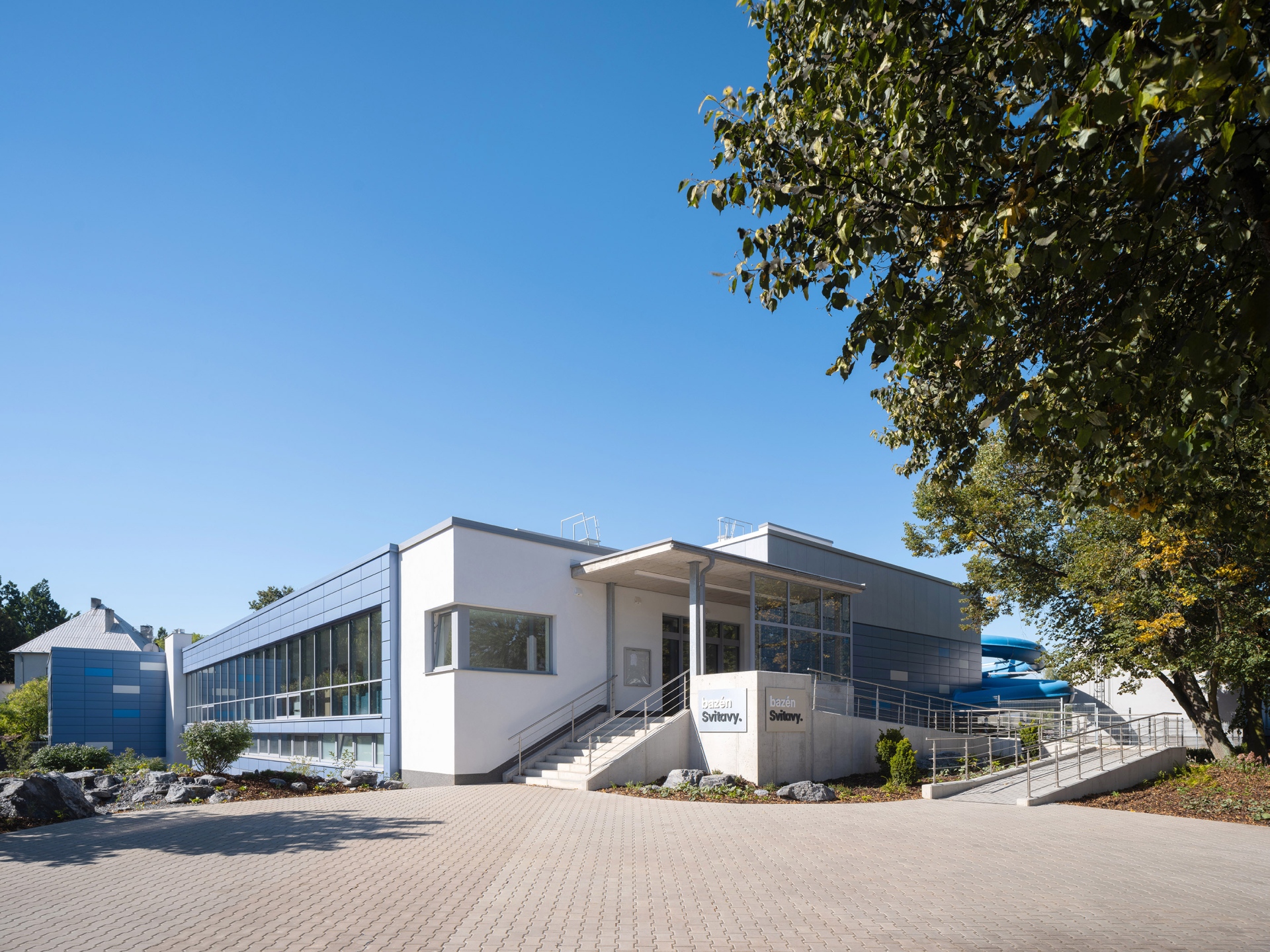 Krytý plavecký bazén ve Svitavách vznikal v letech 1988–1994. Už při svém otevření ale nesplňoval tehdejší standardy a návštěvníci si často stěžovali na chlad ve vnitřních prostorách. Na cestě k rozsáhlé modernizaci, která byla nedávno dokončena, uplynulo téměř deset let. V roce 2016 vyhrála architektonická kancelář Atelier11 z Hradce Králové soutěž na projekt rekonstrukce a rozšíření bazénu, ale k realizaci tehdy ještě nedošlo. Novou studii připravil až v roce 2022 architekt Miroslav Kadečka, opět pro Atelier11, který poté zajistil i kompletní dokumentaci pro stavební povolení a samotnou stavbu. Rekonstrukce trvala rok a půl a město do ní investovalo více než 211 milionů korun, jak uvedl starosta David Šimek. Na začátku letošního září se po letech příprav bazén znovu otevřel veřejnosti – a první plavci si mohli vychutnat koupání v tyrkysově modré vodě nově zmodernizovaného areálu.