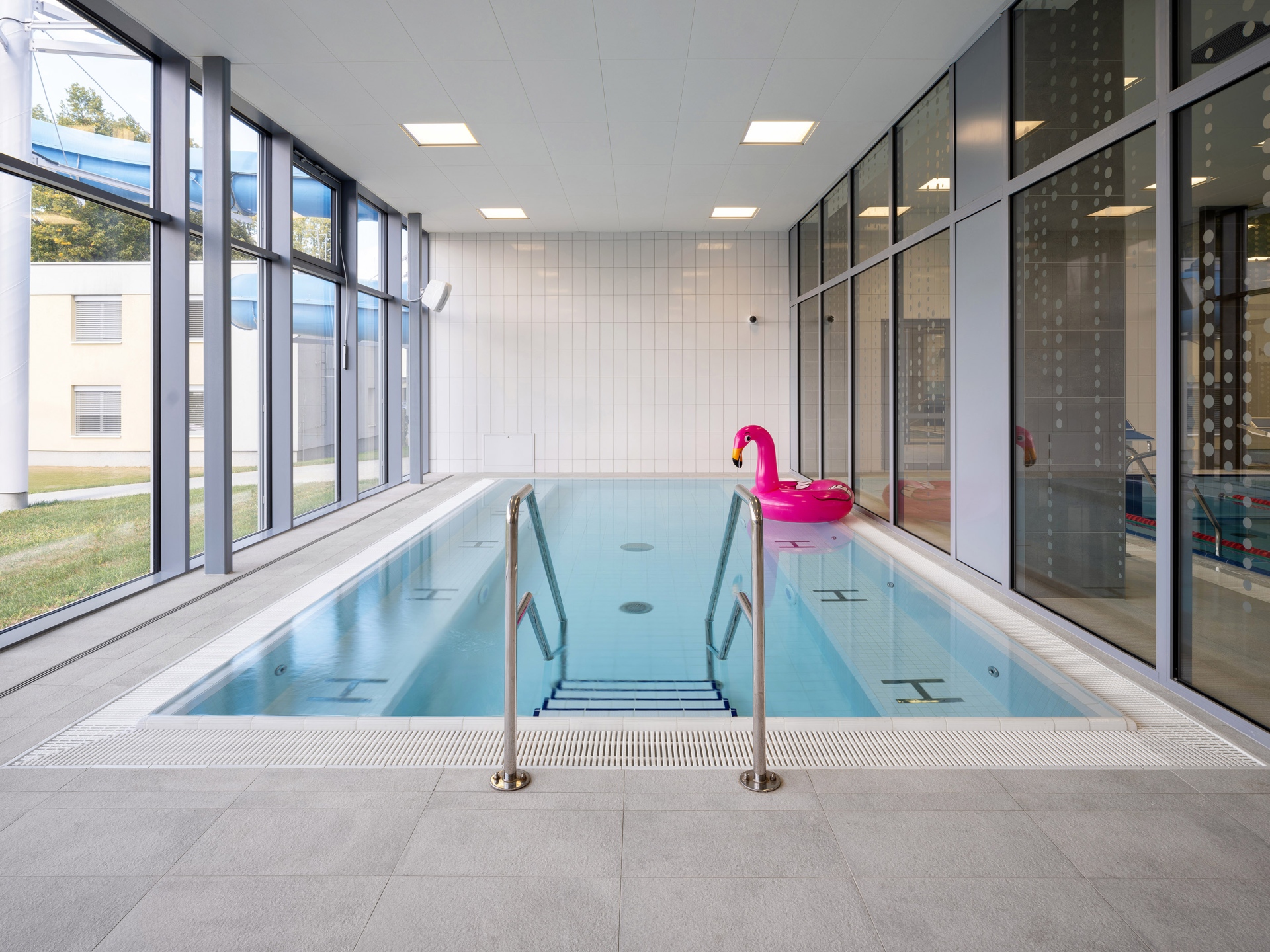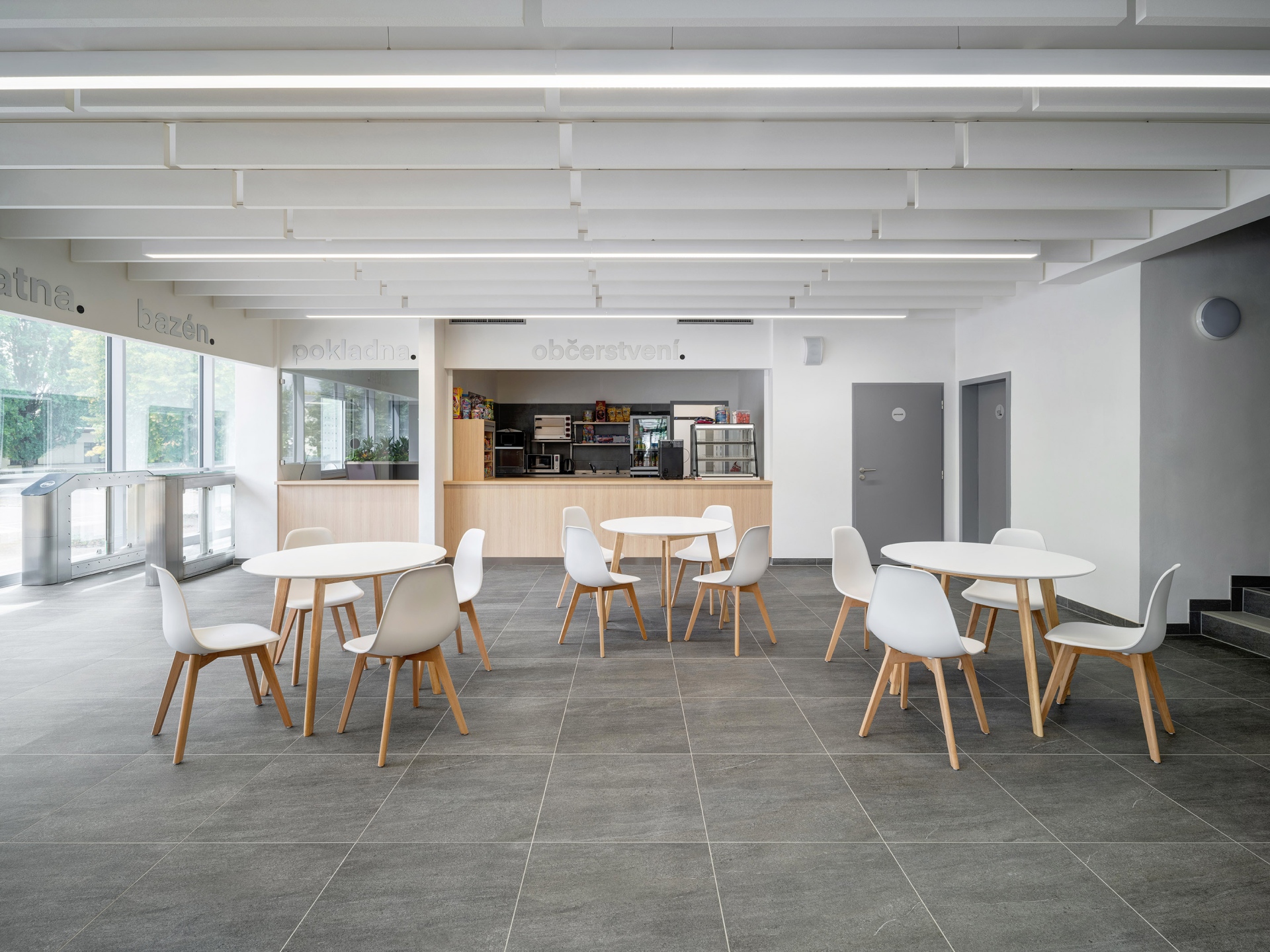 Záměrem nebylo vybudovat wellness centrum ani aquapark, ale zachovat charakter krytého plaveckého bazénu a přivést ho do 21. století. Návštěvníci se nyní mohou těšit na moderní zázemí s občerstvením, dětským bazénkem, vířivkou i odpočinkovou zónou. „Bezbariérový přístup usnadňuje pohyb imobilním osobám, nového komfortu se dočkali i zaměstnanci díky zrekonstruovanému zázemí,“ doplňuje změny Tomáš Mrázek z kanceláře Ateliér11 Hradec Králové.