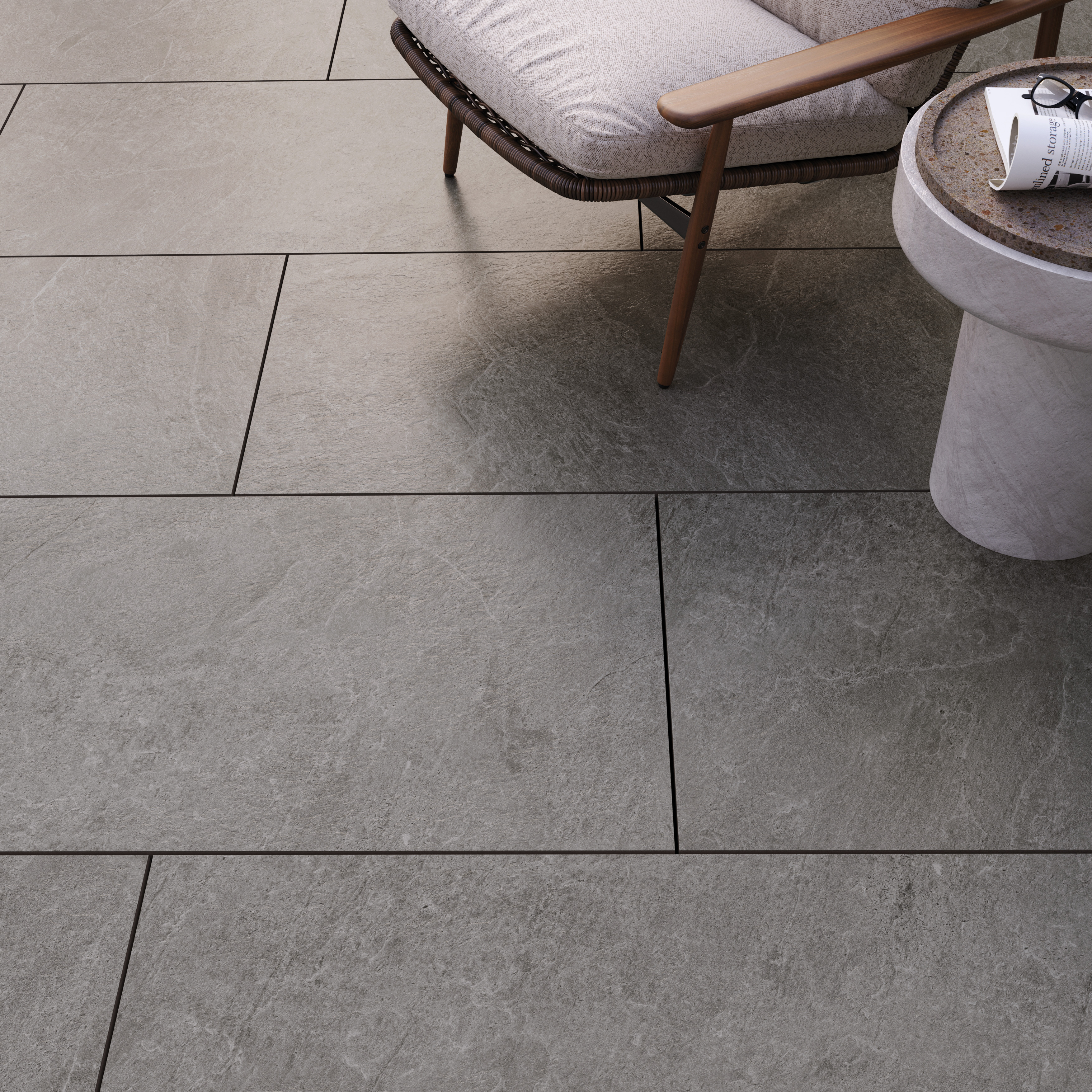 Pro milovníky venkovních prostor nabízíme dlaždice CORE OUTDOOR také v novém, atraktivním formátu 60 × 120 cm a 60 × 60 cm. Dlaždice nabízejí autentický kamenný vzhled a ladí s interiérovými variantami. Povrch R11/C je ideální k bazénům a do mokrého prostředí. S dlaždicemi CORE OUTDOOR můžete vytvořit harmonický přechod mezi interiérem a exteriérem včetně schodovek pro oba formáty.