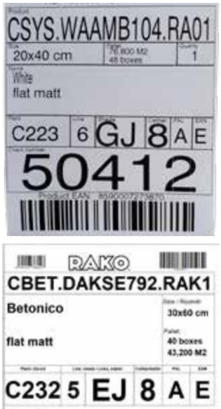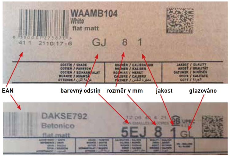 Jsou označeny na paletách, kartonech, u rektifikovaných obkladů také na hraně výrobku.
