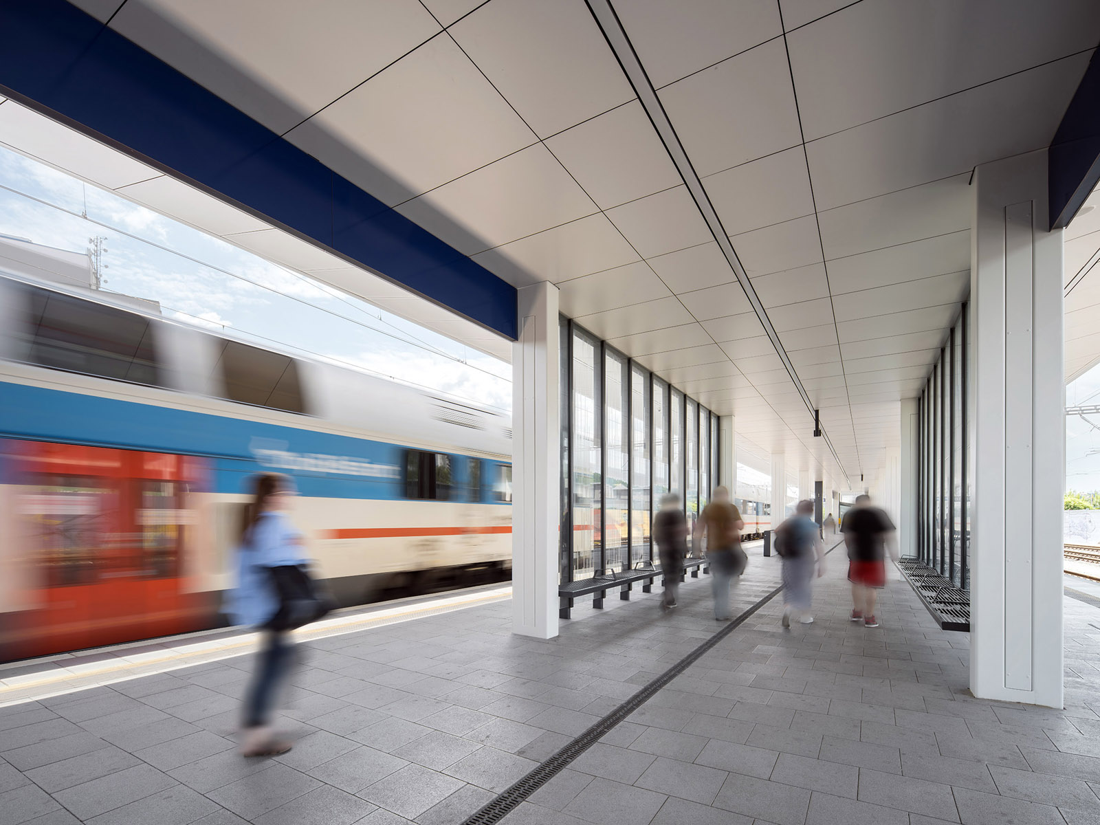 Das architektonische Konzept für die Unterführungen fußt auf der Verbesserung des Betriebs und der Neugestaltung des gesamten Bahnhofsbereichs. Die Unterführungen sind als modernes Infrastrukturbauwerk mit hochwertigem Erscheinungsbild konzipiert und ermöglichen den ungehinderten Durchgang für Fußgänger und Radfahrer. Das Ergebnis ist ein übersichtlicher, heller sowie sicherer Bereich mit eigener Identität und einem klaren, funktionalen und industriell anmutenden Erscheinungsbild. Die Zeitlosigkeit der verwendeten Materialien prägt den Raum, der von tschechischen RAKO-Keramikfliesen bestimmt wird – einer Betonoberfläche verblüffend ähnlich, aber in Haltbarkeit und technischen Eigenschaften die Vorteile von Keramik aufweisen.