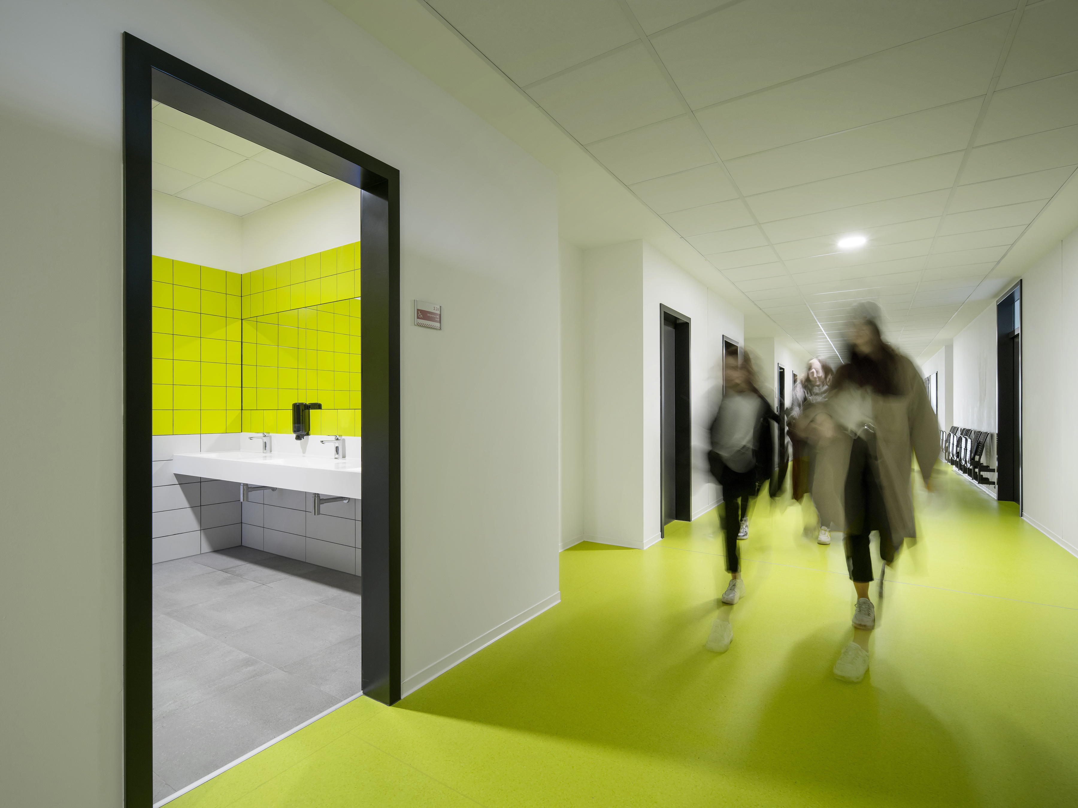 An die eingesetzten Materialien wurden hohe Anforderungen gestellt, die auch die RAKO-Fliesen erfüllen müssen. So ist es notwendig, dass sie den enormen Alltagsbelastungen in den Universitätsfluren und Laboren standhalten. In allen Gebäuden kamen die RAKO-Fliesen Taurus, Color One, Color Two als ein modular durchdachtes System von sich ergänzenden Produkten zum Einsatz. Auch Serien mit lebhaften Designs und speziellen Formaten aus den Serien Extra und Cemento sind hier verlegt.