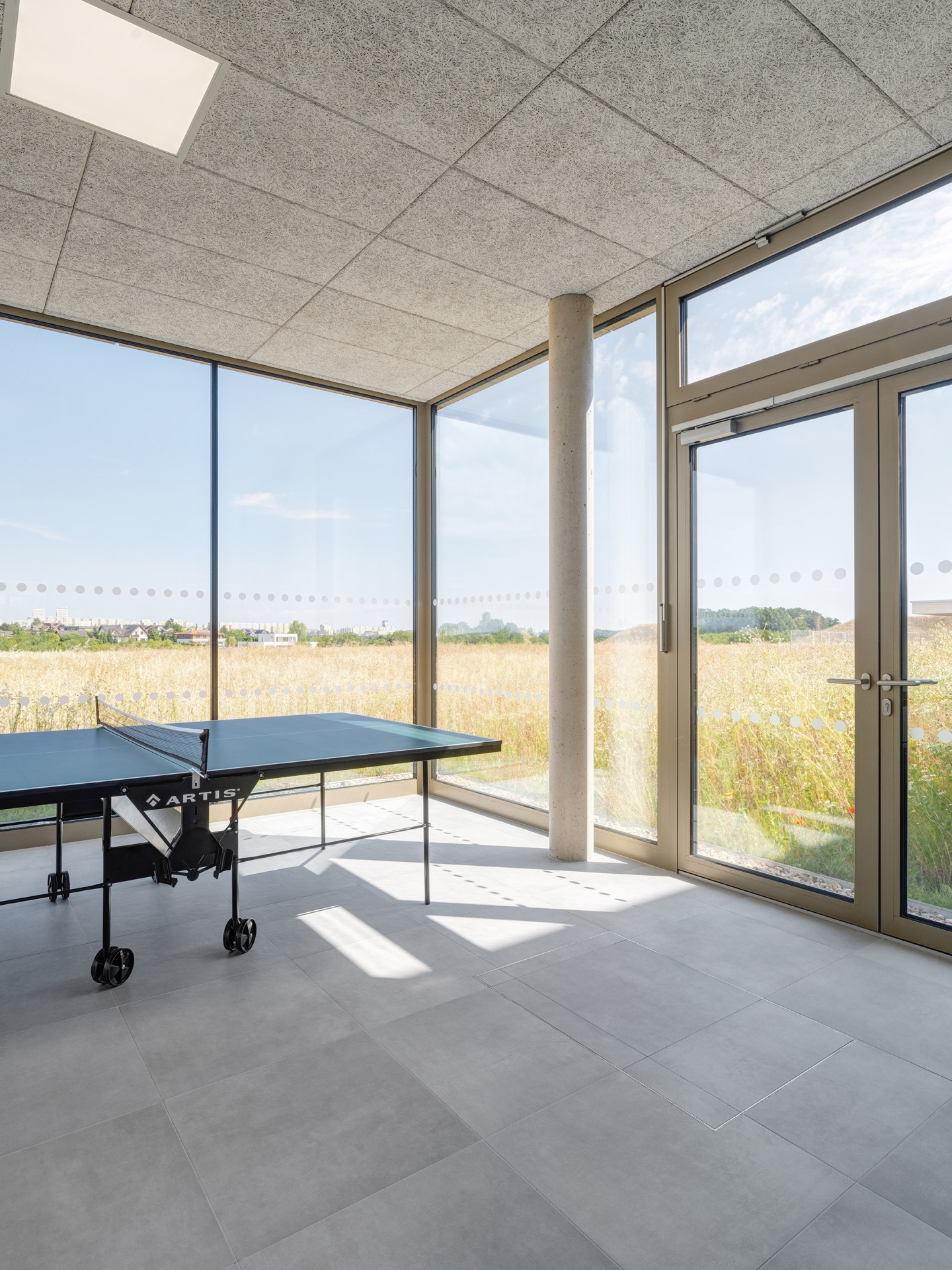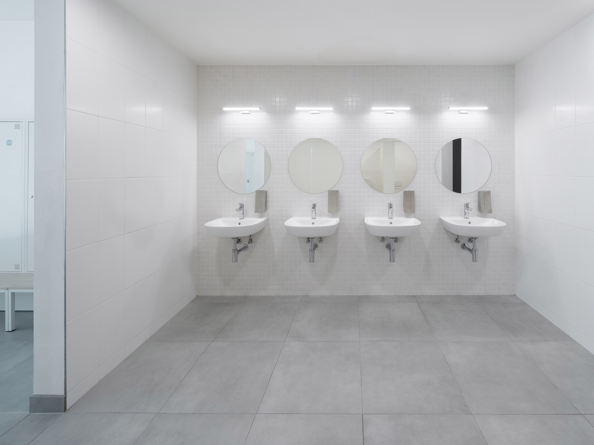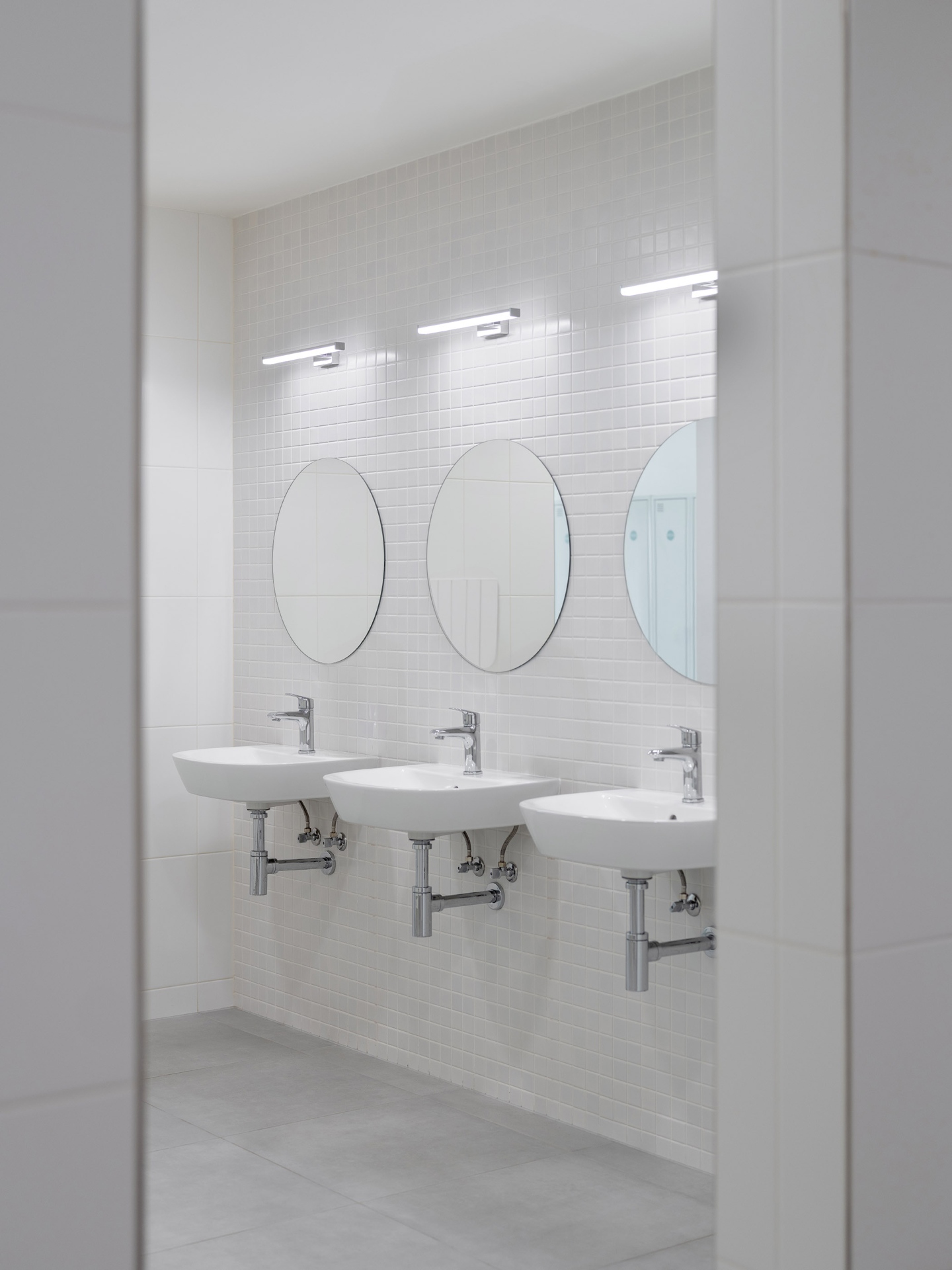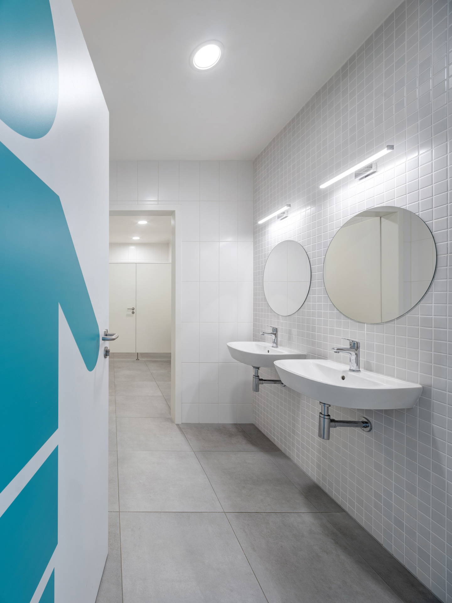 Ceramic tiles are undoubtedly a material that has been tried and proven true over generations. The Czech brand RAKO, with over 140 years of tradition, has a good reputation and confirms its quality both at home and abroad. Architect Lapka emphasised that the ADR studio has a practice of using RAKO ceramic tiles. If they are in need of service support or technical recommendations from Lasselsberger, they can reach out to the manufacturer at any time. The Extra-series large-format tiles were used for the most heavy-duty floors, while the sanitary facilities and catering areas were fitted with Colour One and Colour Two series tiles. “We chose the concrete-like Extra-series for several reasons – we like concrete screeds and exposed concrete in projects, and the optimal price was also a factor in our decision,” adds the architect.
