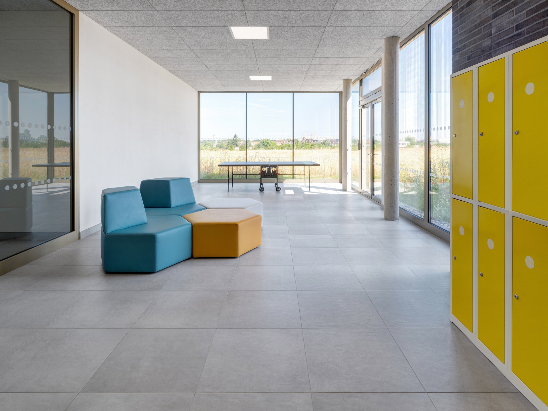 The school is currently frequented by 350 pupils, and the plan is to increase the capacity to 450 children. The corridors are no longer empty and are now bustling with activity. With this in mind, the architects worked from the outset when selecting high-quality floor coverings. Primary school is a public space and the parameters of the materials used must comply with the relevant laws and standards. Some parameters are defined by hygiene standards, such as the slip resistance of floors in sanitary facilities. ADR studio’s architect Aleš Lapka adds that hygiene and fire safety requirements are more strictly monitored today compared to the past. Aesthetic considerations are also important. Floors in schools are subject to similar requirements as in other public buildings, with a focus on slip resistance, durability, hygiene, fire resistance, easy maintenance and surface longevity. Ceramic tiles are the clear choice to achieve those properties. For the future success of the project, it was essential that those who use it – in this case teachers, cooks, janitors and, last but not least, pupils – were also involved. The school management therefore communicated openly with the architects in advance to ensure that the final solution met the required specifications as closely as possible.