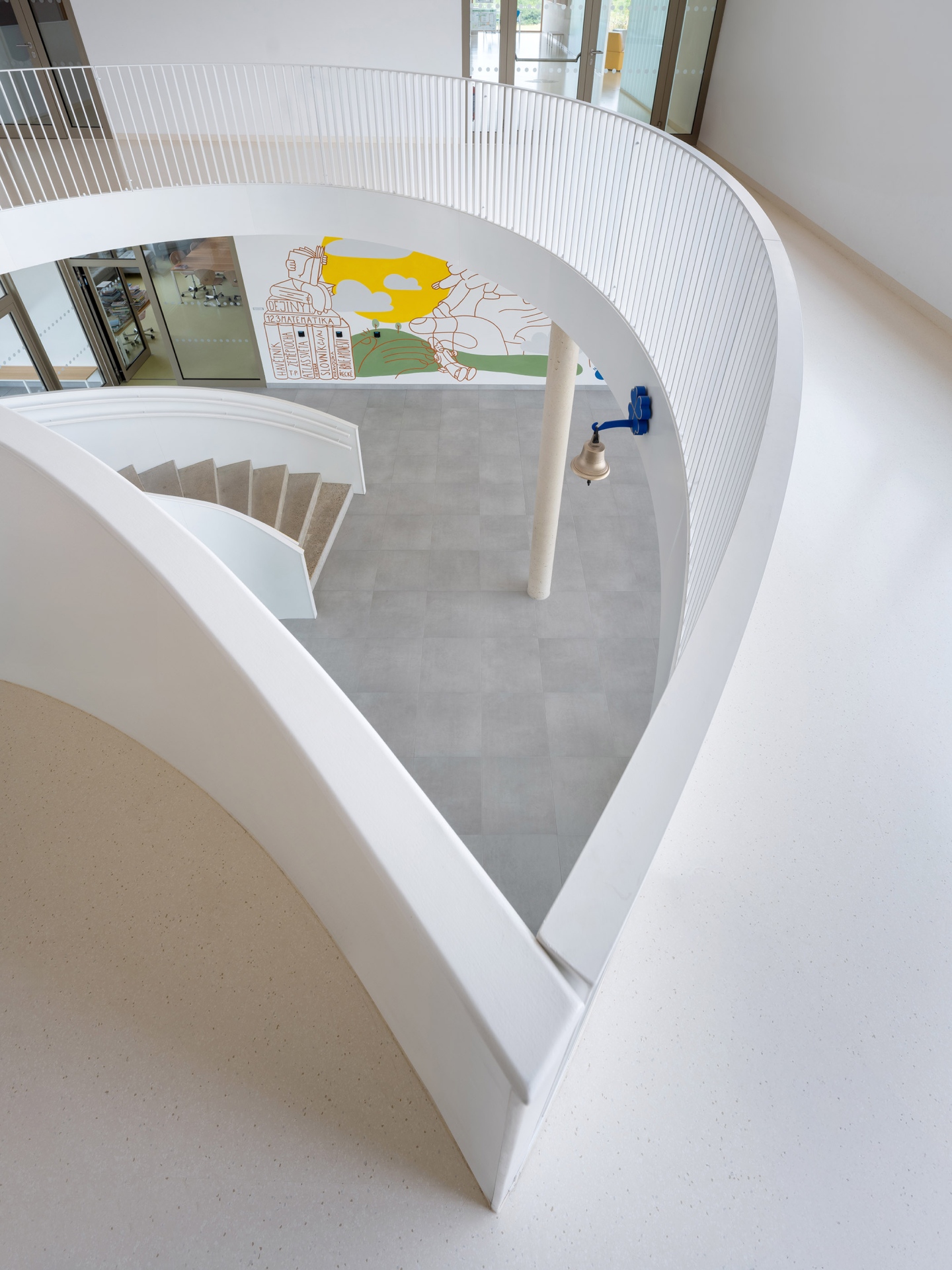 Architect Aleš Lapka took the opportunity to voice certain criticism regarding the situation in the construction of primary schools in our country compared to developed European countries: “Due to complex legislation, we are not doing very well. Since 1989, or rather since the Velvet Revolution, only two new primary schools have been built in the capital city of Prague! Both projects were designed by our office.” The approval process was long, but that meant that the latest trends in construction – materials, advanced technologies and sustainability – could be reflected in the appearance and functioning of the new building. It did not end with proclamations, but with a concrete solution, which the architect describes as follows: “The school is located near the Hrnčířské louky natural monument and builds on its character by emphasising environmental education and working with the surrounding landscape. Sustainability is therefore not just a technical parameter, but a natural part of the educational concept – children come across the principles of sustainable use of water, energy and space in their daily activities. The building uses a heat pump system, the water is ready in retention tanks for watering greenery, and screens and fawns ensure passive comfort. We also preferred ceramic products. The tiles are made of a natural material that is harmless to health and manufactured in this country. The technological solution emphasises low energy consumption in the school’s operation and simple maintenance. Long-term sustainability is easy to understand and, above all, easy to see for the users themselves – children, teachers and parents."