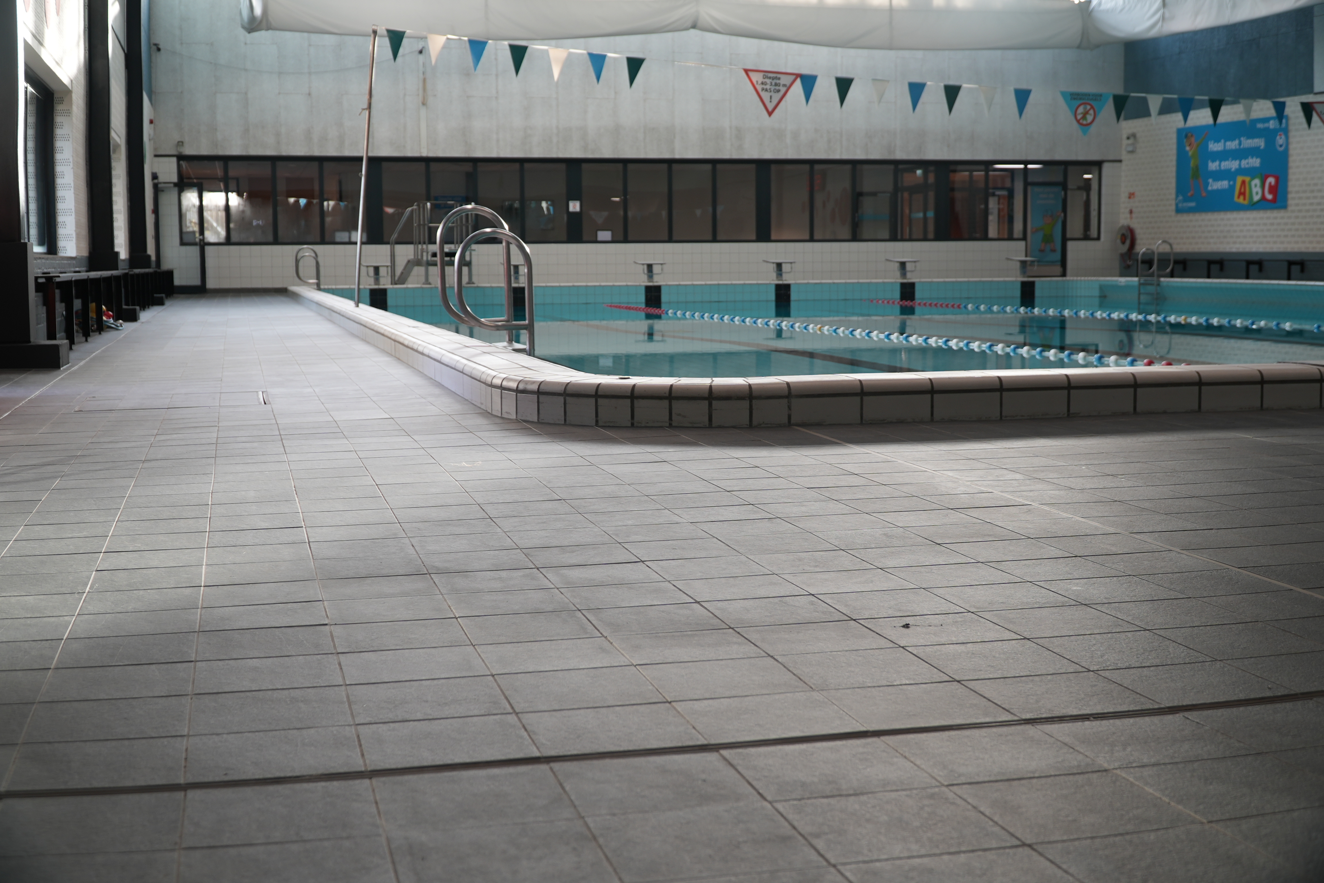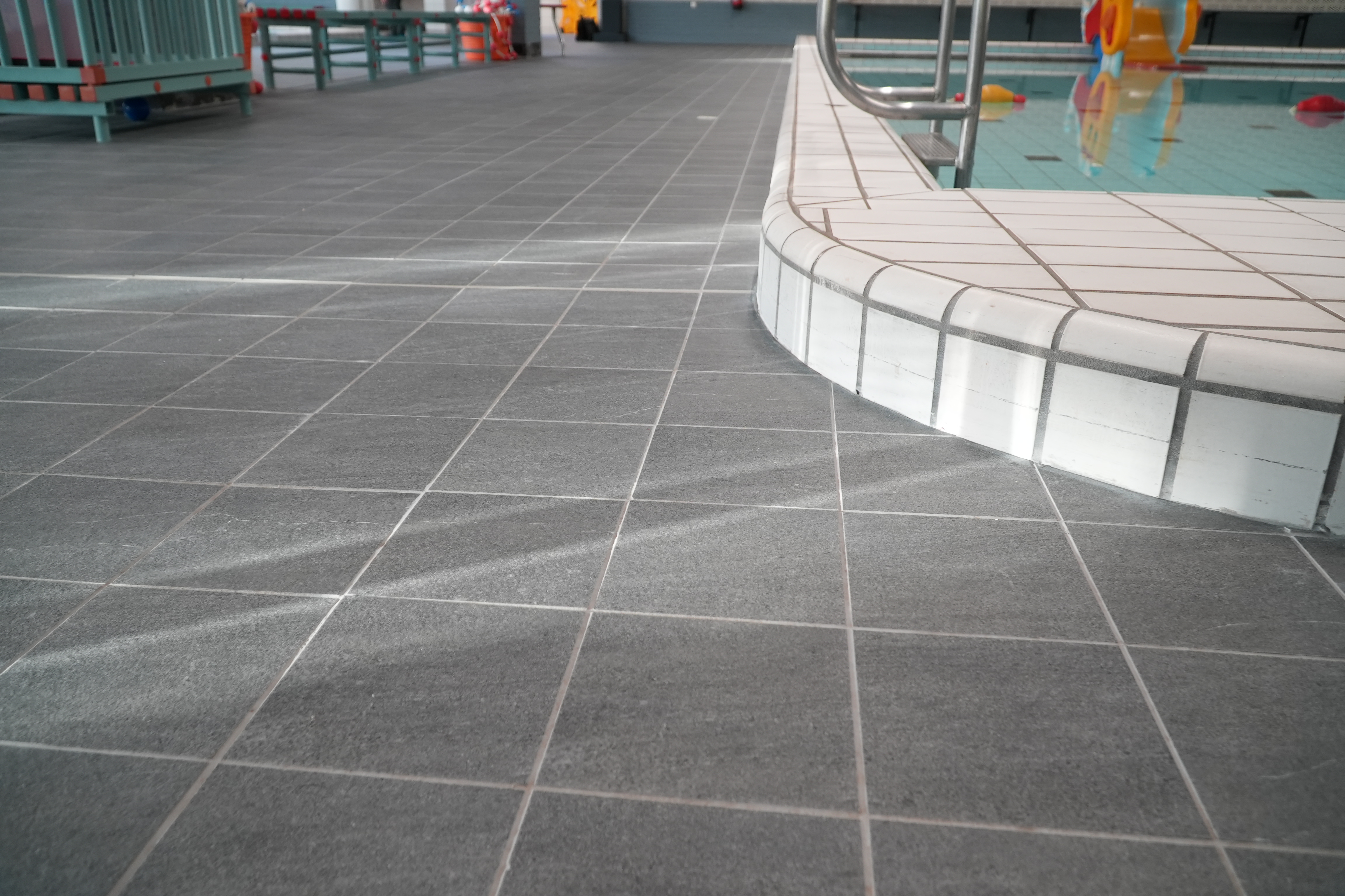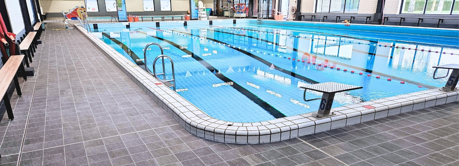 The complete renovation of the Die Heygrave pool in Vlijmen included the installation of new tiles in the pool hall, sports area, and adjacent spaces. The work also involved replacing concrete benches and upgrading the drainage system.