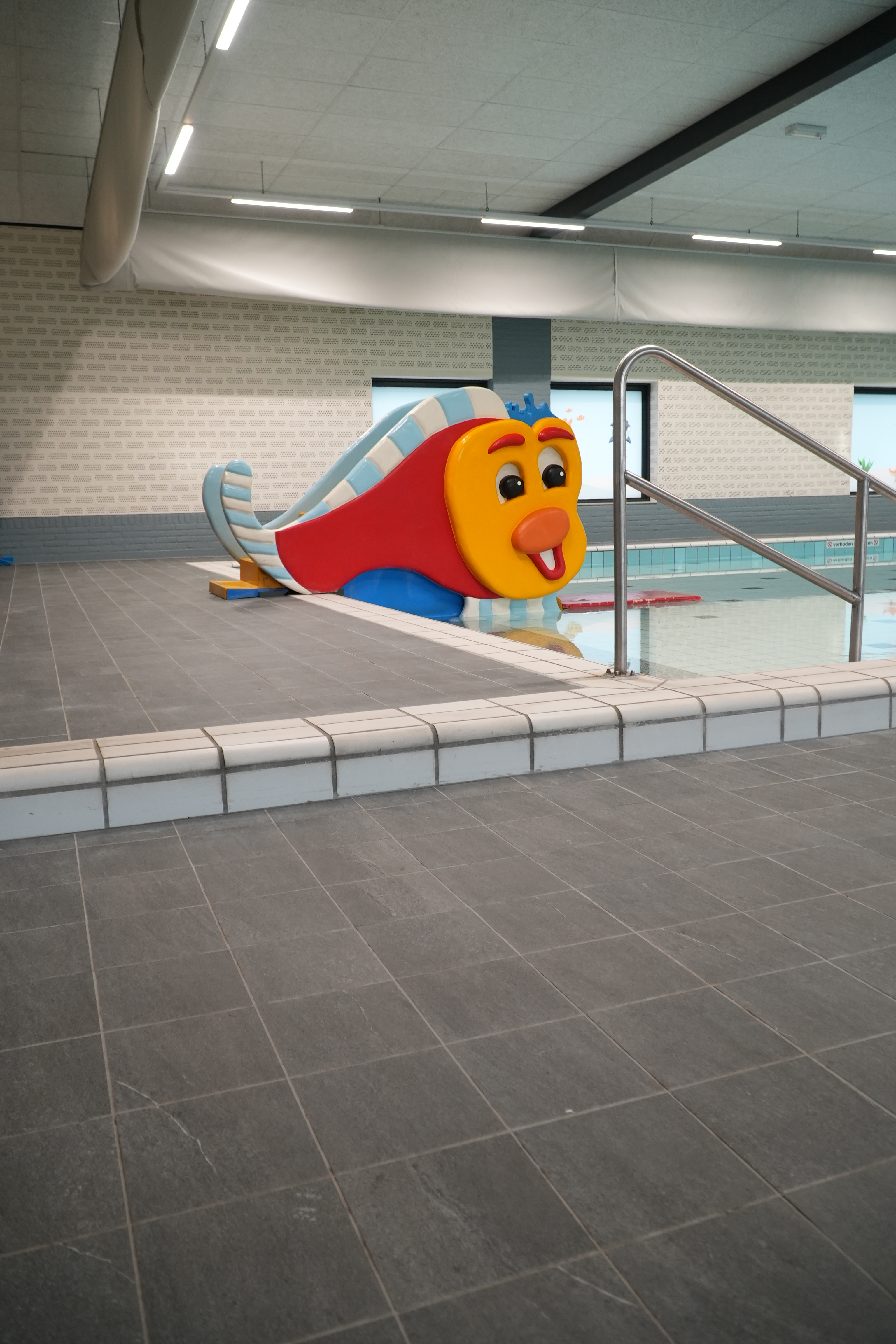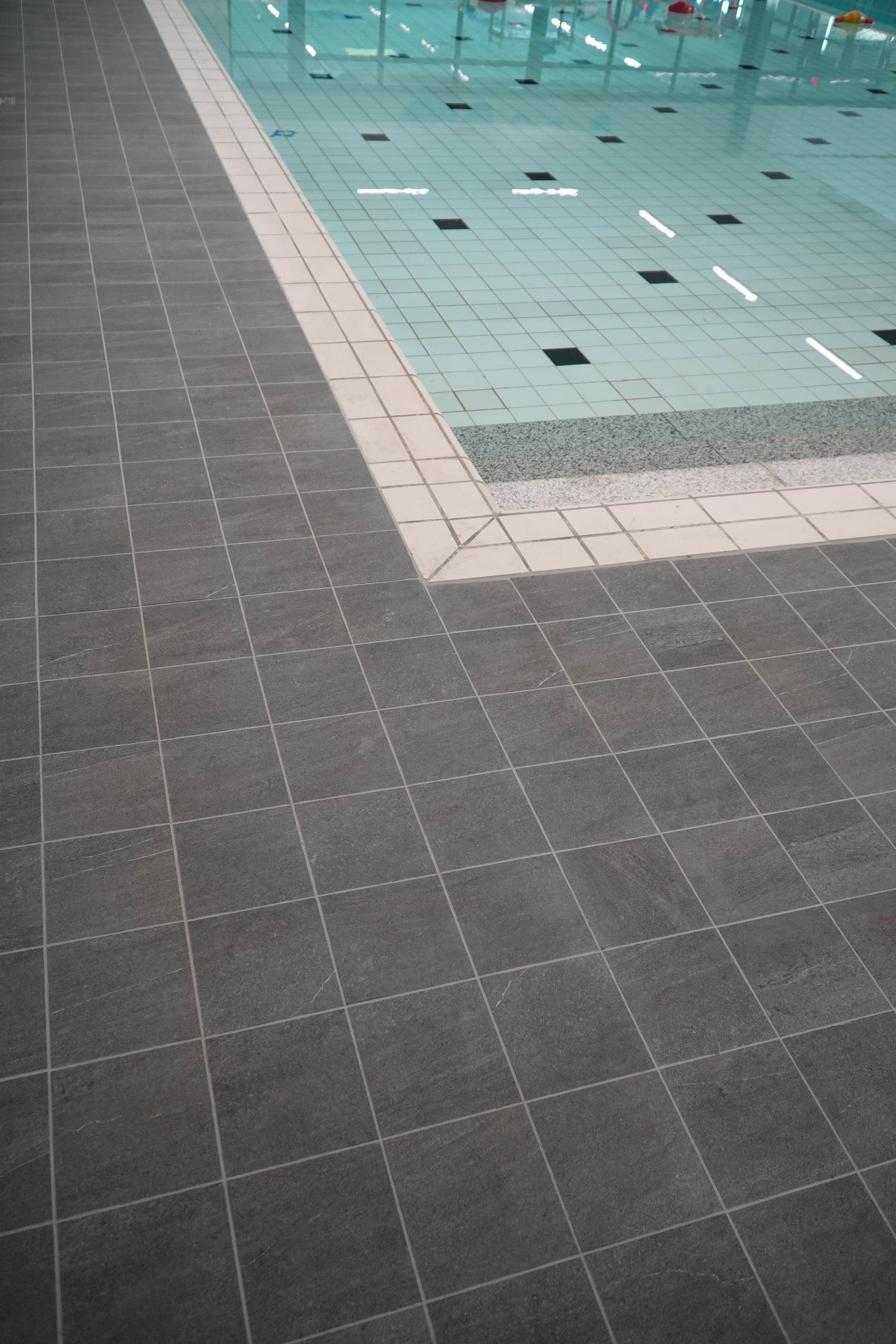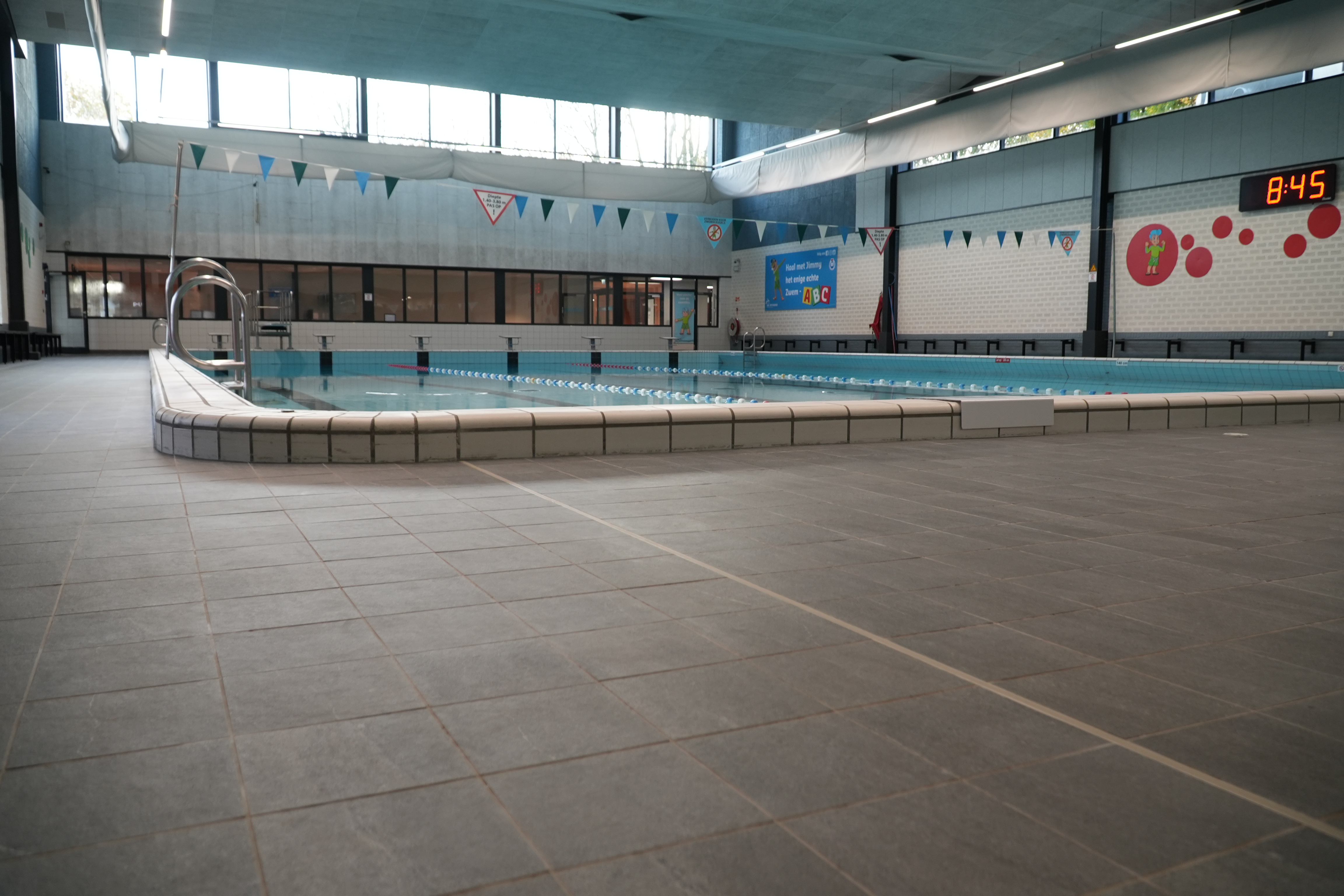 The complete renovation of the Die Heygrave pool in Vlijmen included the installation of new tiles in the pool hall, sports area, and adjacent spaces. The work also involved replacing concrete benches and upgrading the drainage system.