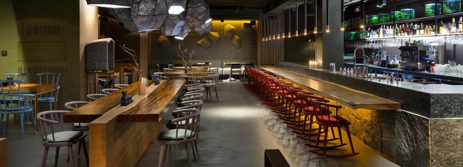 Impressive interiors in a colour range of earthy shades will welcome guests of the newly opened Panasian EAST Restaurant in the historic centre of Kiev. From the rush of the central part of the Ukrainian Capital, you will enter a modern environment, visually connecting the main natural elements of the East - stone, wood, water, fire, and metal. The palm-tree oak table tops gently light up the original felt lighting fixtures in the shape of stones, in contrast to the rusty appearance of the interior space. This is complemented by the Clay series ceramic floor tiles with a soft matt relief, reminiscent of hard-packed clay.