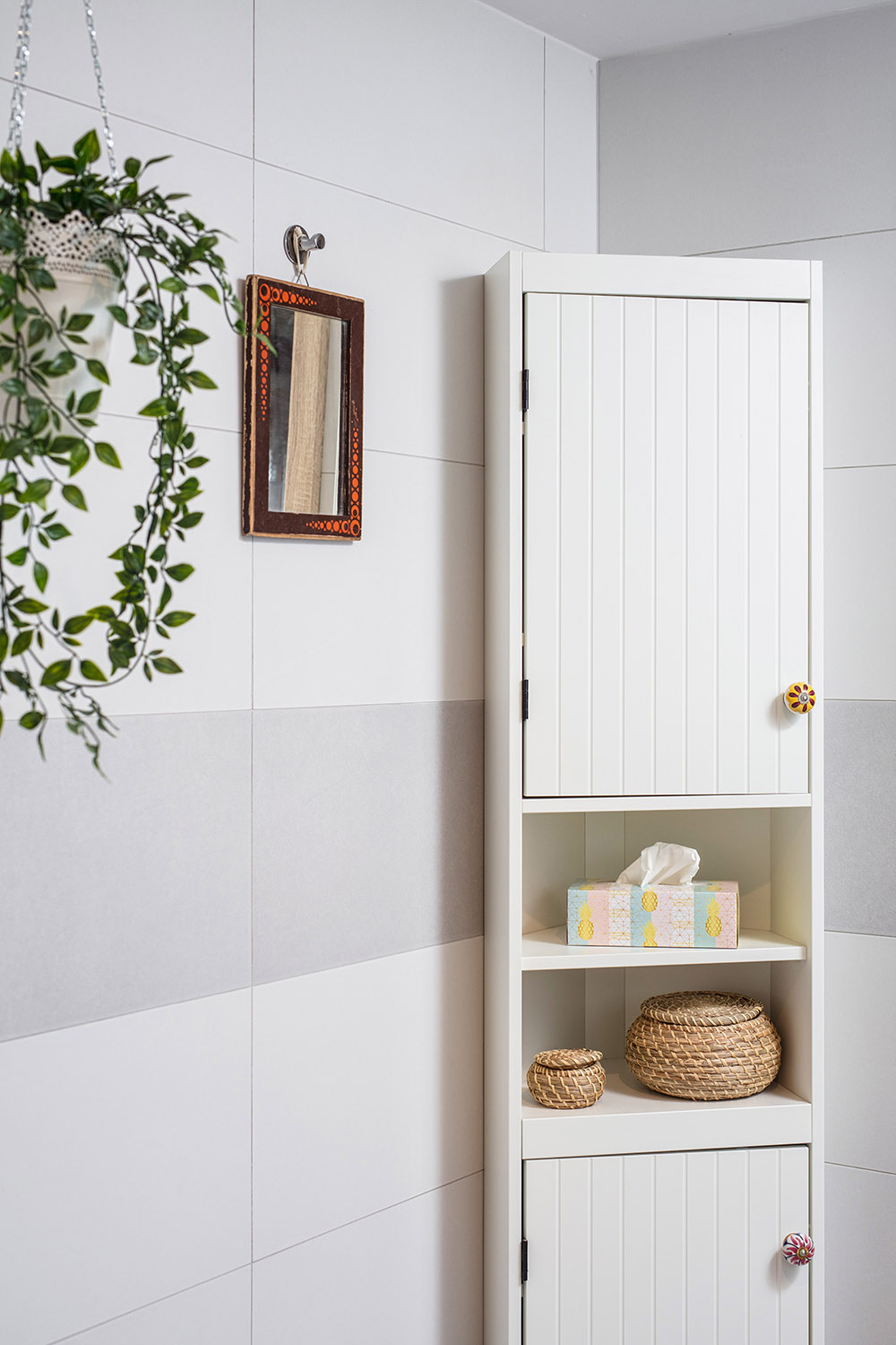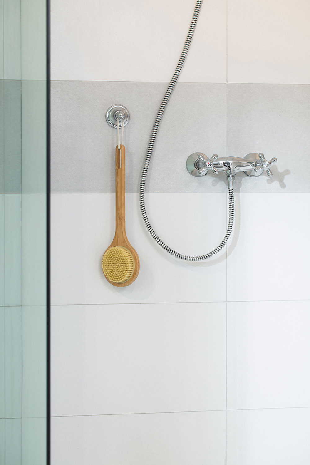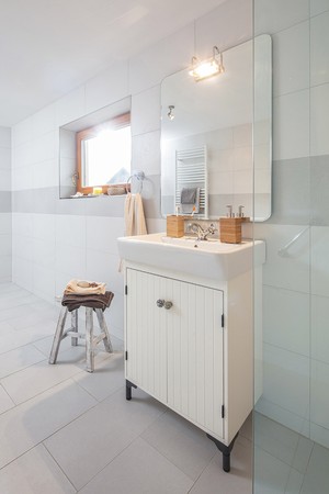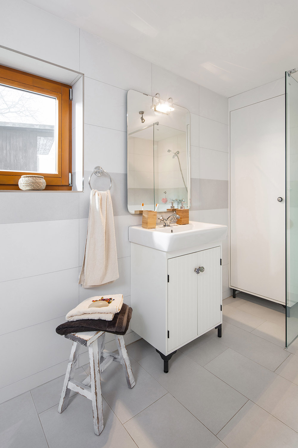 Next tears of joy and emotion came, when it was done. „We had a clear vision of a light bathroom, because there is only a small window in it and therefore a lack of natural light. Furthermore, we like simple style, no frills.“