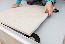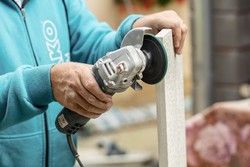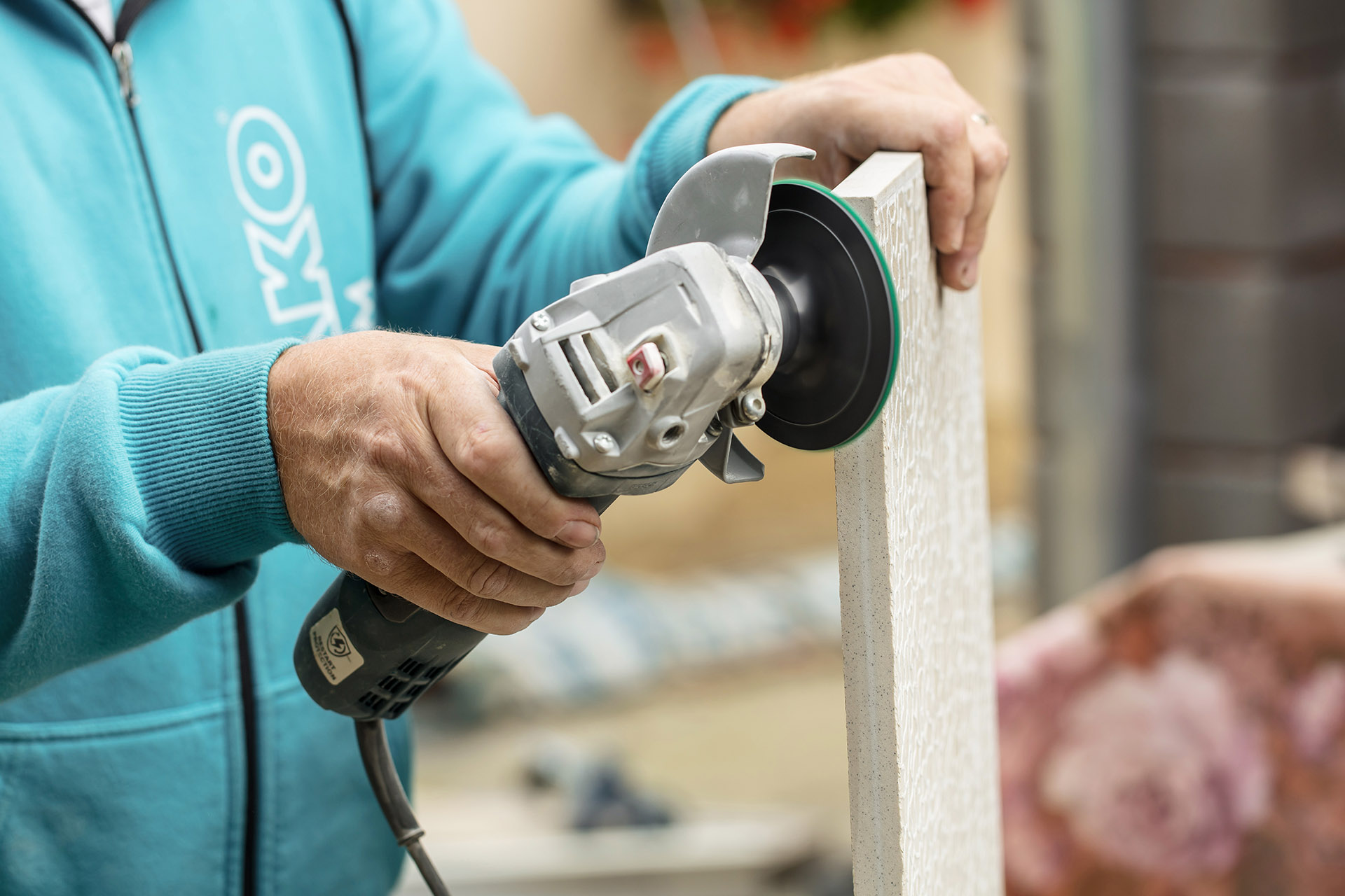 Preparation of the finish cuttings: The embossed 2 cm tiles can be cut only with electric cutting machines fitted with guide rails or with stand saws. Grind the tile edges with an angular grinder equipped with a grinding pad.