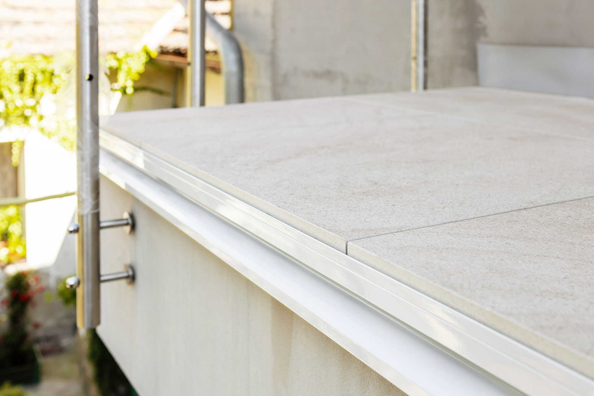 Finished: The balcony edges can be finished with a metal profile or bar. Laying on pedestals is suitable for terraces, balconies, roofs or public areas with easy access to drainage or waterproofing. Pavement with tiles laid on pedestals is unsuitable for vehicular traffic.