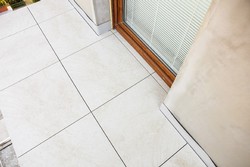 Connection of the cut elements: The cut ceramic pieces seamlessly connect to the door and balcony wall.