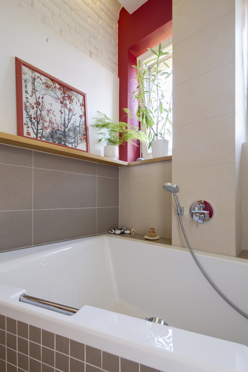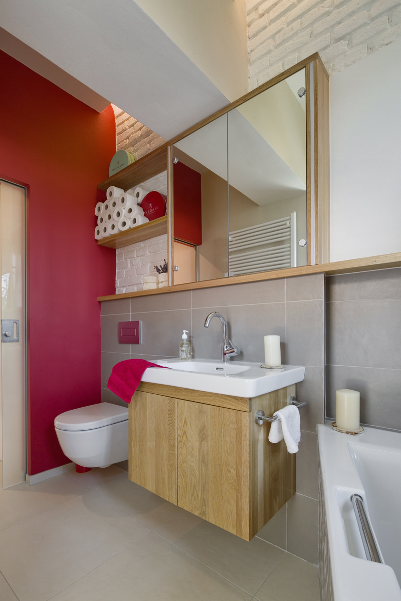 Instead of a damp pantry and a lavatory, there is a bathroom there today. When choosing ceramic tiles, that should have been hight-quality, nice and for a reasonable price, Jan chose the brand RAKO. He first tried it out in the programme „Jak se staví sen“ (How a dream is built). „It often happens, that clients demand very short delivery terms, which is an advantage that RAKO has in comparison with other producers. RAKO can deliver pretty much anything from thein product line within a few days. That was not our case, we planned everything in advance at home,“ Jan says. At the beginning, he thought about the Sandstone pavement. Eventually, he tended to the neutral color and warmer feeling of the Clay series. Jan used it to connect the floor of the bathroom, hall, lavatory and the technical room. „The aesthetic effect of the assortment is not based on the imitation of stone or another material, which is quite frequent with tiles nowadays. A monochromatic wave surface combined with a fine structure creates the image of alternation of glossy and matt surface. This ganges with the illumination, when you walk on it, it appears „live“. I like Clay the best, I have tried it out at home and since that time I have been using it on further orders,“ architect Jan Ranný concludes.