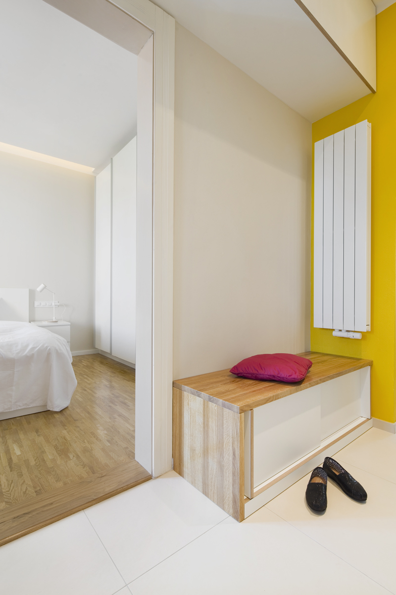 Eva was looking for someone who could design a reconstruction plan for her. The architekt Jan Ranný was recommended to her by her relatives. „At our first meeting, I found interesting, what Eva planned here – according to her, a secret entrance fits into an old apartment. The essential point was, that she New, how the disposition should work, she wished for a lot of light and yellow color. I have overhauled all the things that were working and made sense,“ the architect mentions.