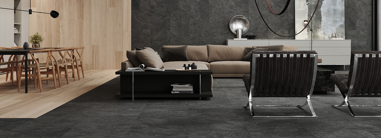 The irregular surface texture of the CORE series, made up of transversely broken pieces of stone, perfectly reproduces the split slate, a long-awaited innovation in the RAKO portfolio. Inspired by textured surfaces, the new relief offers an authentic stone look at first glance, enhanced by greater variation in design across the tiles. Flexibility of formats, including 60 x 120, 60 x 60, 30 x 60, 10 x 10 and 5 x 5 cm, and technical accessories allow architects to integrate tiles into a variety of styles and environments. The R10/B (ABS) surface is ideal for safe indoor use. CORE is the perfect choice for those looking to combine the natural look of tiles with modern functionality. Less is more.