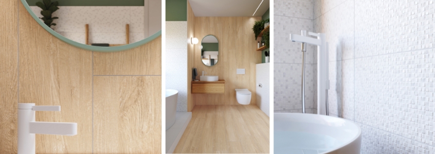 Aby jeszcze bardziej dopracować wygląd wnętrza, seria PLANK oferuje białą płytkę ścienną o wymiarach 30 × 90 cm. Jej delikatny mozaikowy wygląd łączy błyszczącą i matową powierzchnię, nadając łazienkom subtelny kontrast oraz odrobinę zabawy w detalach.