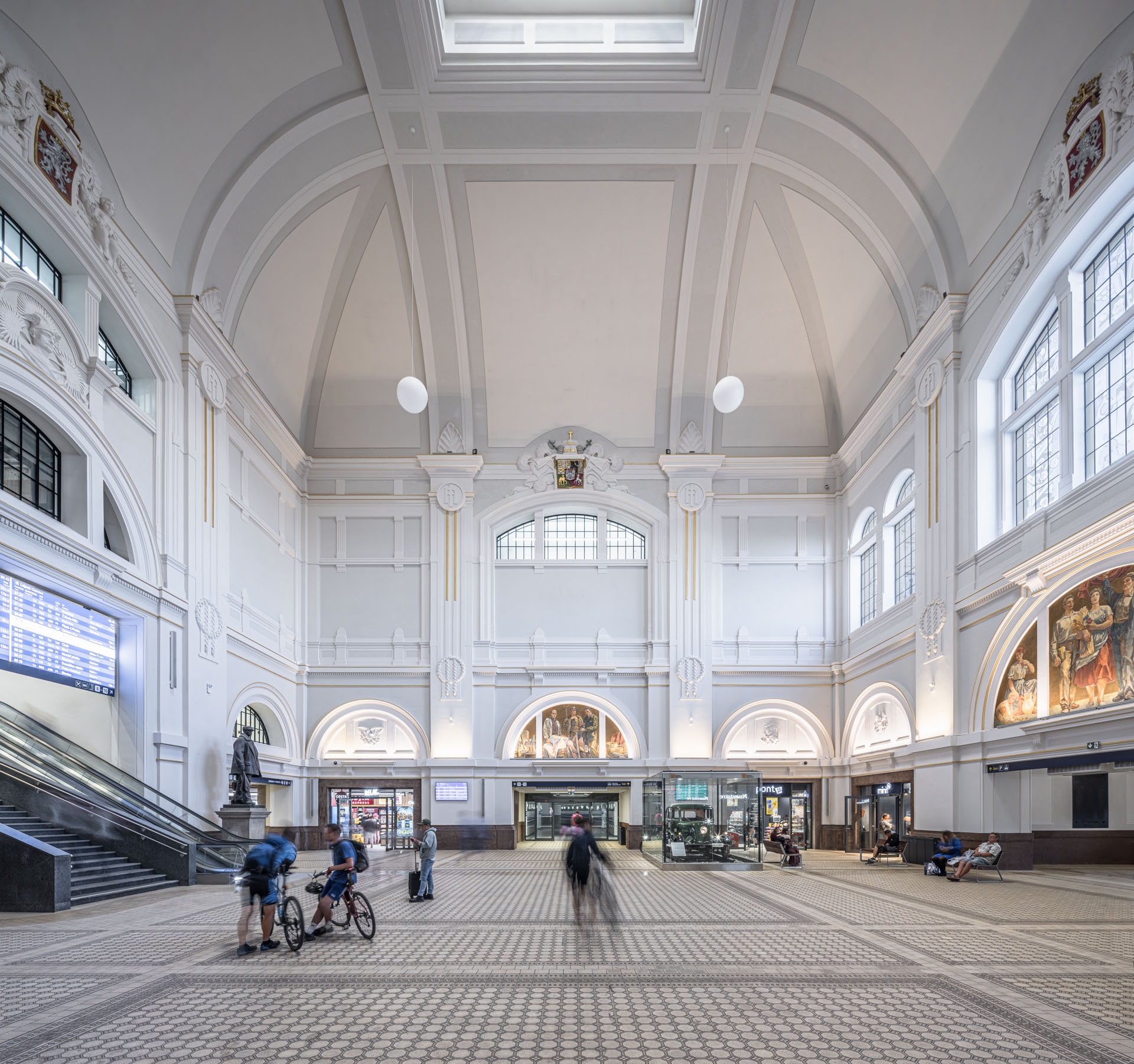It is impressive what careful renovation can do to historic railway station buildings: travelers can relive the heyday of rail travel, the years when traveling by train was an experience and a privilege. Historic, sometimes nostalgic features of restored Art Nouveau buildings are blended with contemporary, mostly minimalist elements. The result is safe, functional, and clear spaces where passengers perceive the station as a pleasant environment where they can meet their needs and feel comfortable.