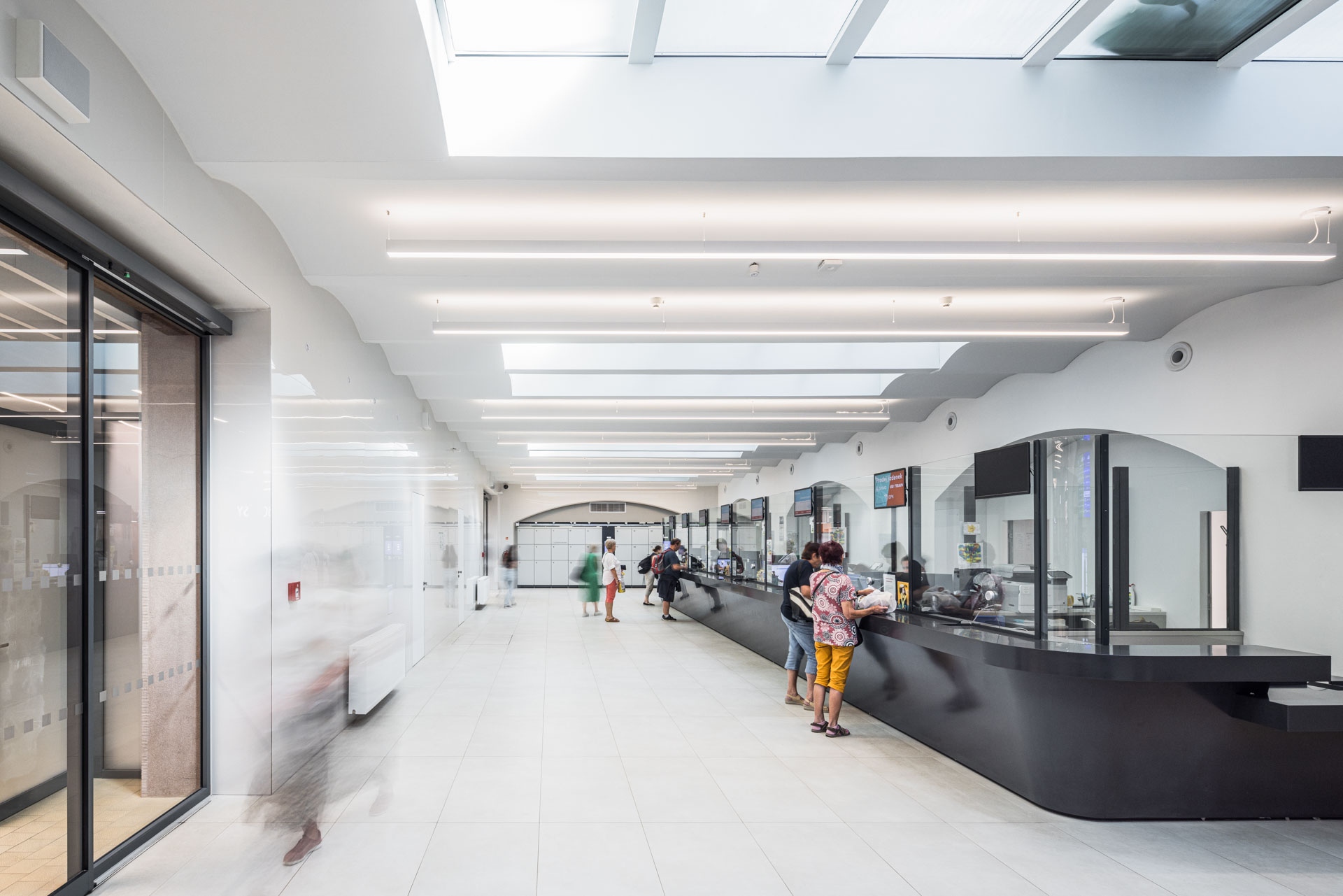 Architect Pavel Kvintus from the architectural firm A8000 explains: “The renovated station in Pilsen is a great opportunity for the development of the entire city. ” The architectural firm A8000, together with the construction company SUDOP, approached the redesign of the interior of the historic Pilsen station with caution and respect for the existing structure. In doing so, the architects and the construction company succeeded in rediscovering and highlighting the original, elegant character of the building. To this end, the color scheme was completely changed: as was the case fifty years ago, soft shades of gray, white, and cream now dominate the interior. Historical elements or replicas thereof are accentuated by new, modern interpretations. “We have renovated the historical parts of the station with respect and used modern materials for the fixtures and fittings, so that the new and old complement and blend harmoniously. This is an approach that is very important to us. However, our main focus is on simplifying the journey for passengers. The interior of the station needed to be clear and functional. The existing layout of the station building was confusing and the ticket offices were scattered in different places," explains Pavel Kvintus.