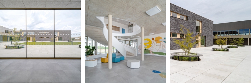 Architect Aleš Lapka took the opportunity to voice certain criticism regarding the situation in the construction of primary schools in our country compared to developed European countries: “Due to complex legislation, we are not doing very well. Since 1989, or rather since the Velvet Revolution, only two new primary schools have been built in the capital city of Prague! Both projects were designed by our office.” The approval process was long, but that meant that the latest trends in construction – materials, advanced technologies and sustainability – could be reflected in the appearance and functioning of the new building. It did not end with proclamations, but with a concrete solution, which the architect describes as follows: “The school is located near the Hrnčířské louky natural monument and builds on its character by emphasising environmental education and working with the surrounding landscape. Sustainability is therefore not just a technical parameter, but a natural part of the educational concept – children come across the principles of sustainable use of water, energy and space in their daily activities. The building uses a heat pump system, the water is ready in retention tanks for watering greenery, and screens and fawns ensure passive comfort. We also preferred ceramic products. The tiles are made of a natural material that is harmless to health and manufactured in this country. The technological solution emphasises low energy consumption in the school’s operation and simple maintenance. Long-term sustainability is easy to understand and, above all, easy to see for the users themselves – children, teachers and parents."