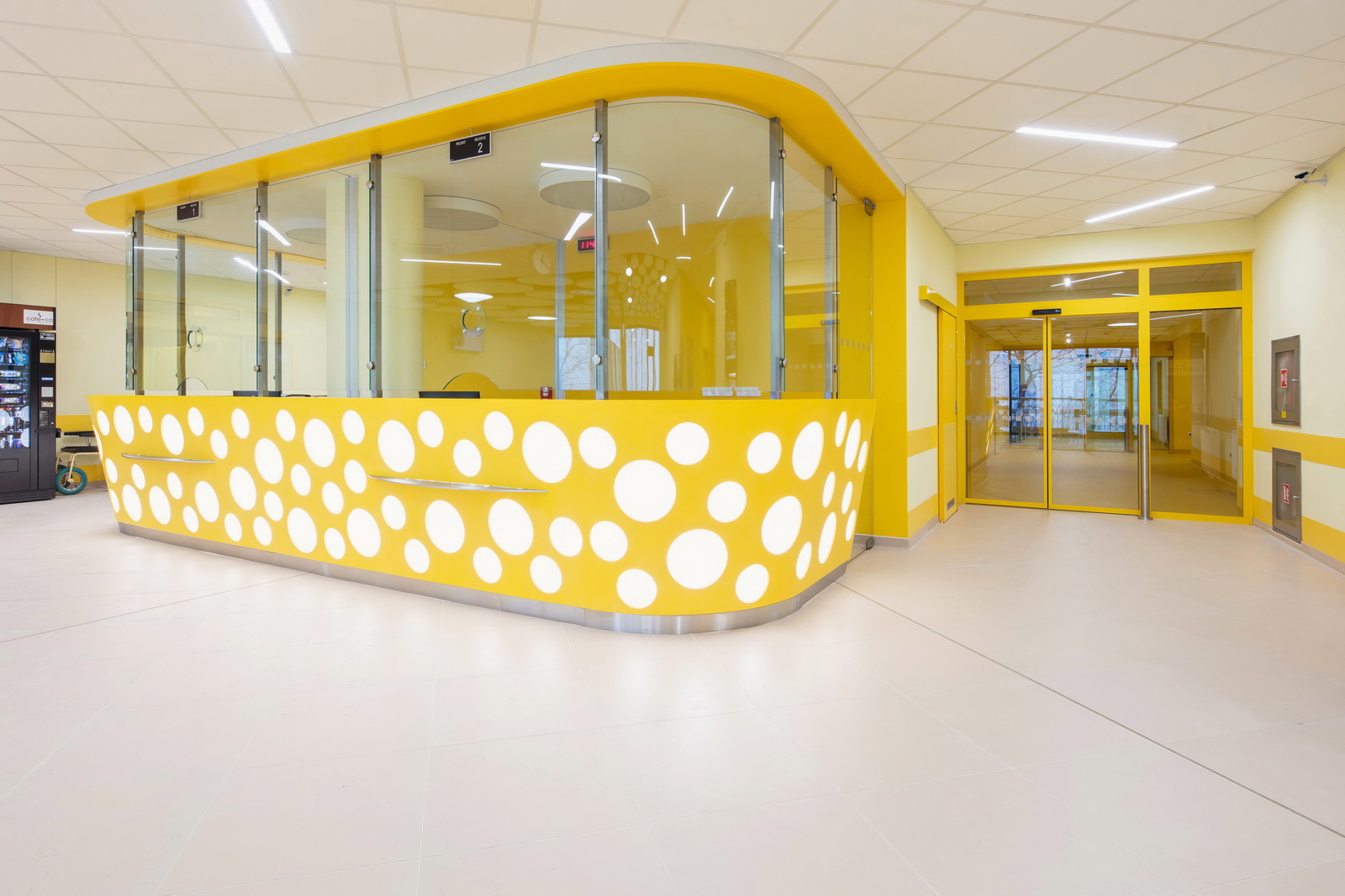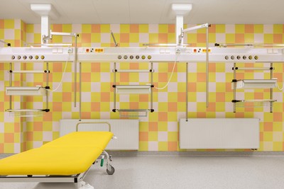 Wyraźne kolory dominują w nowym pawilonie chirurgicznym Szpitala w Třebíč. Kolorowe płytki ceramiczne stwarzają optymistyczny nastrój, a ponadto ułatwiają orientację pacjentom i personelowi, ponieważ każde piętro ma swój kolor. Szeroką paletę kolorów płytek ceramicznych, spełniających jednocześnie wysokie wymagania dotyczące higieny i łatwego czyszczenia powierzchni, oferuje marka ceramiki obiektowej RAKO OBJECT, adresowana przede wszystkim do architektów i projektantów. W sumie w pawilonie szpitalnym C użyto ok. 4000 m2 płytek ściennych i podłogowych tej czeskiej marki.